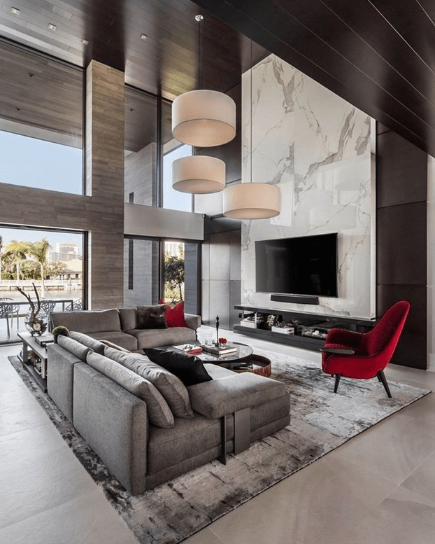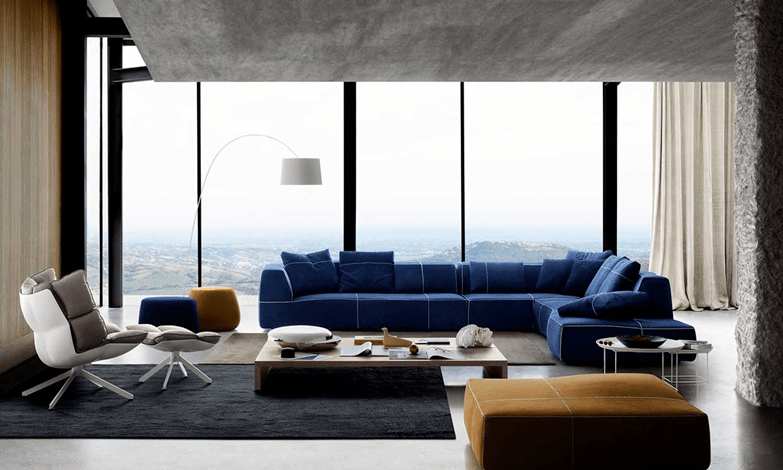 El mobiliario suele ser de líneas rectas y limpias, acompañado de una decoración generalmente de formas abstractas. Es un estilo que puede resultar acogedor y cálido por su combinación de tonos y materiales: arenas, madera, acero, vidrios, piedra, microcemento, etc.